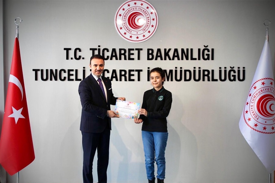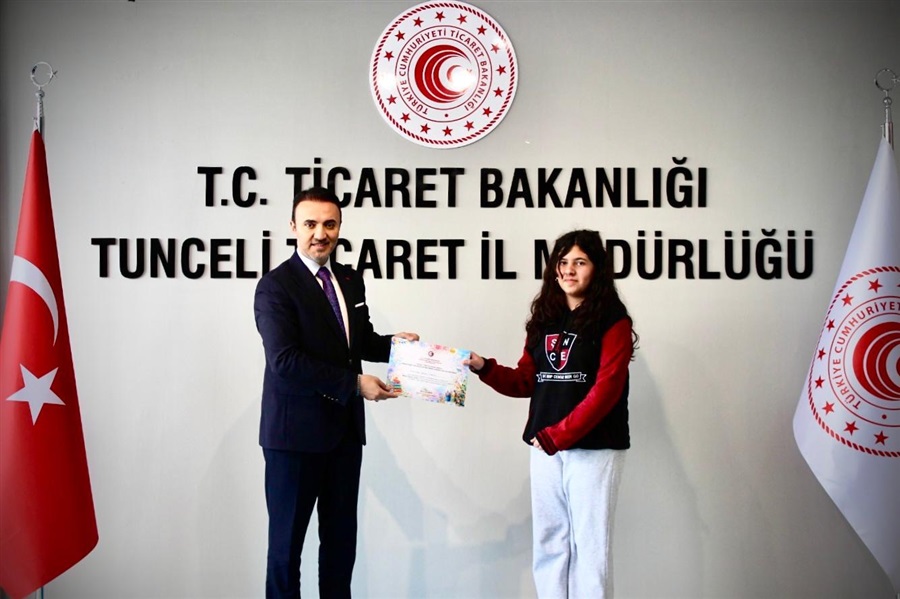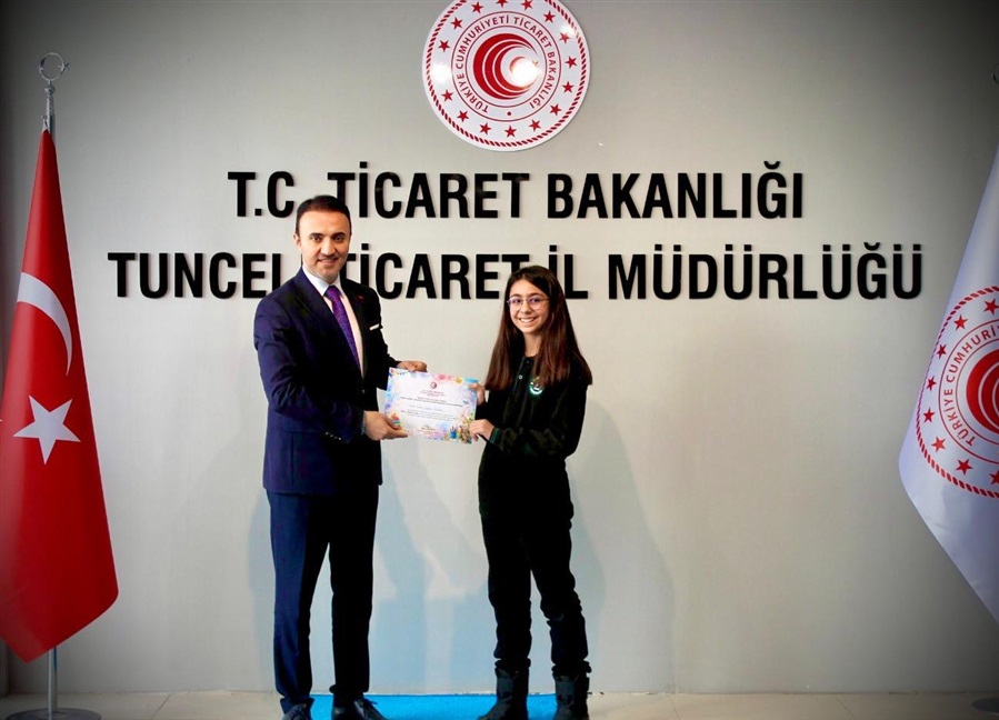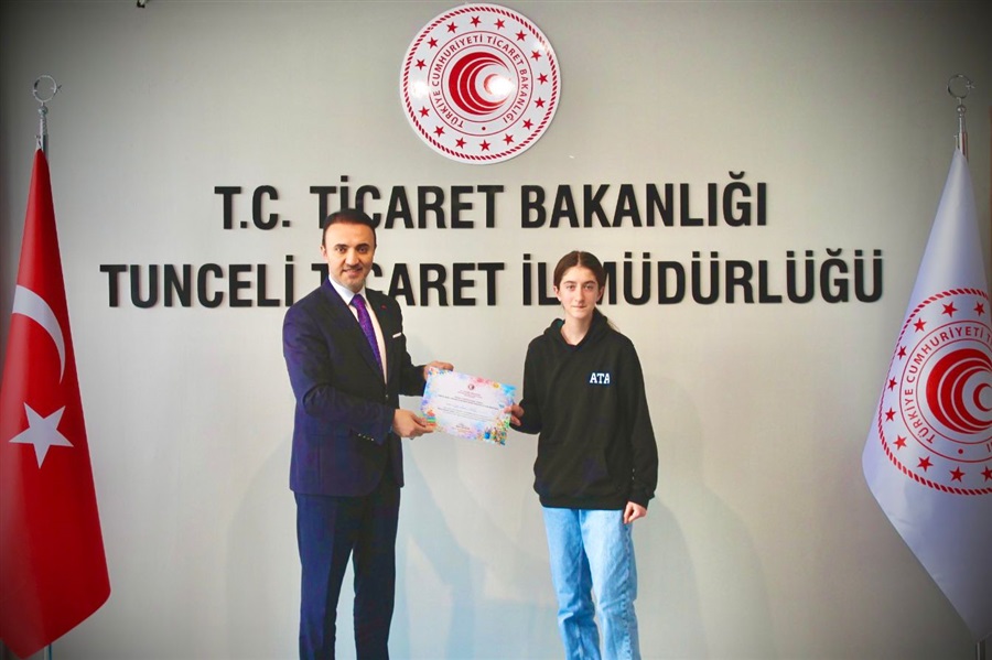 Yarışmada Hacı Bektaş Veli Bilim ve Sanat Merkezi öğrencisi Elif Yaren Taş, il birincisi olurken, dereceye giren öğrenci için Tunceli Ticaret İl Müdürlüğü binasında düzenlenen törende sertifika ve ödül, Tunceli Ticaret İl Müdürü Kayahan Topal tarafından takdim edildi.